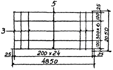 Сетка С5 состоит из 25 поперечных стержней из стали Ø 12 А-II длиной 2650 мм и 11 продольных стержней из стали Ø 6 А-I длиной 4850 мм. Порядок и последовательность раскладки стержней сетки аналогичны при вязке сетки С1.