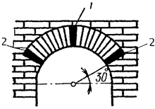 2.11 Швам при кладке арок и сводов придают клинчатую форму, где толщина шва внизу не менее 5 мм, а вверху не более 25 мм.