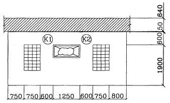 Общую ширину рабочих мест принимают равной 2,5 - 2,6 м, в том числе рабочую зону 60 - 70 см (рис. 1).