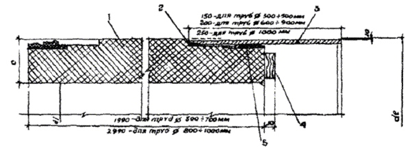 2.6. Стыковое соединение полимербетонных труб (рис. 3) включает наружную кольцевую муфту из полиэфирного стеклопластика или из стали с антикоррозионным покрытием, по одному кольцевому уплотнителю специального профиля из каучука-эластомера на каждом из концов соединяемых труб, стыковую кольцевую прокладку из прессованной древесины, закладываемую в процессе монтажа между торцами смежных труб, а также кольцевые уплотнители из губчатой резины или герметика типа Тиксопрол-АМ, находящиеся по торцам муфты.