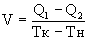 - определяют продолжительность испытания трубопровода (Тк - Тн) мин, объем подкаченной в трубопровод воды из мерного бачка Q и рассчитывают величину фактического расхода дополнительного объема вкаченной воды V, л/мин, по формуле:
