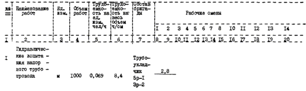 2.7.1. Работы по гидравлическому испытанию трубопроводов из эмалированных труб с гладкими концами ведутся в две смены бригадой рабочих в составе 3-х человек в смену: