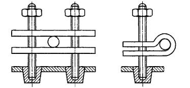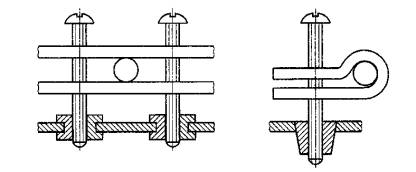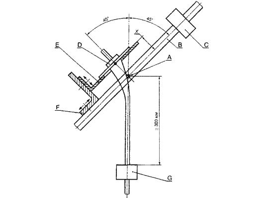 Допускается применять другой способ подвески ударного элемента с использованием двух льняных нитей. Чтобы при этом способе подвески ось ударного элемента была перпендикулярна к поверхности пружины маятника, система подвески должна быть отрегулирована так, чтобы ударный элемент после удара о пружину перемещался по тому же самому пути, что и перед ударом. Кроме того, необходимо следить. Чтобы нить. ближайшая к головке молотка, располагалась на достаточном расстоянии от конца ударного элемента и чтобы она не служила помехой для маятника и указателя.