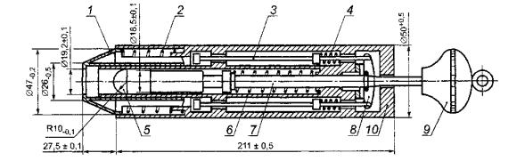 Настройку калибрующего устройства проводят с использованием отдельного ударного элемента 1, извлеченного из пружинного испытательного устройства, как показано на рисунке 1.6.