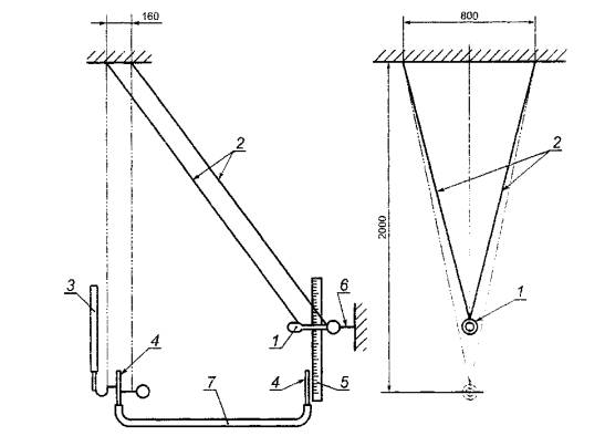 Высоту падения измеряют от центра тяжести ударного элемента: для удобства измерения могут быть использованы две стеклянные трубки 4 (рисунок 1.6), соединенные между собой гибким шлангом 7. Одну стеклянную трубку закрепляют и снабжают шкалой 5.