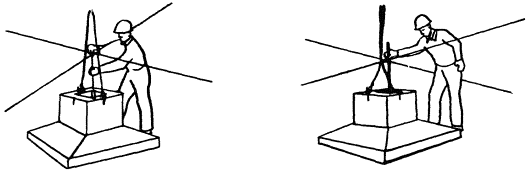 СТРОПОВКА ФУНДАМЕНТА; 1 мин; М2; строп Монтажник М2 цепляет два крюка четырехветвевого стропа за монтажные петли фундамента. Убедившись в надежности строповки, он отходит на безопасное расстояние и подает команду машинисту крана приподнять фундамент