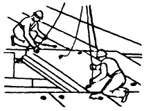 ПОДГОТОВКА ЛЕСТНИЧНОЙ ПЛОЩАДКИ К СТРОПОВКЕ; 7 мин; Т; щетка, скарпель, кувалда Такелажник производит внешний осмотр лестничной площадки, проверяя ее поверхность и монтажные петли. При необходимости он очищает их от грязи, ржавчины и наплывов бетона при помощи стальной щетки, скарпеля и кувалды |
