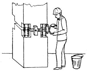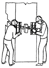 4.1. Операция по замоноличиванию стыков рамы выполняют в следующем порядке: подготовляют стыки; устанавливают на них стальную опалубку, тщательно затягивая ее болтами; устанавливают и подготовляют к работе смеситель-инъектор; подсоединяют шланги от смесителя-инъектора к питающим штуцерам в опалубке; приготовляют в смесителе раствор; включают двигатель насоса и под давлением до трех атмосфер подают подвижный раствор М300 по шлангам в полость стыка.