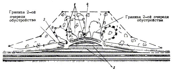 1 - грузовые автомобили; 2 - легковые; 3 - смотровая эстакада; 4 - туалет; 5 - кафе