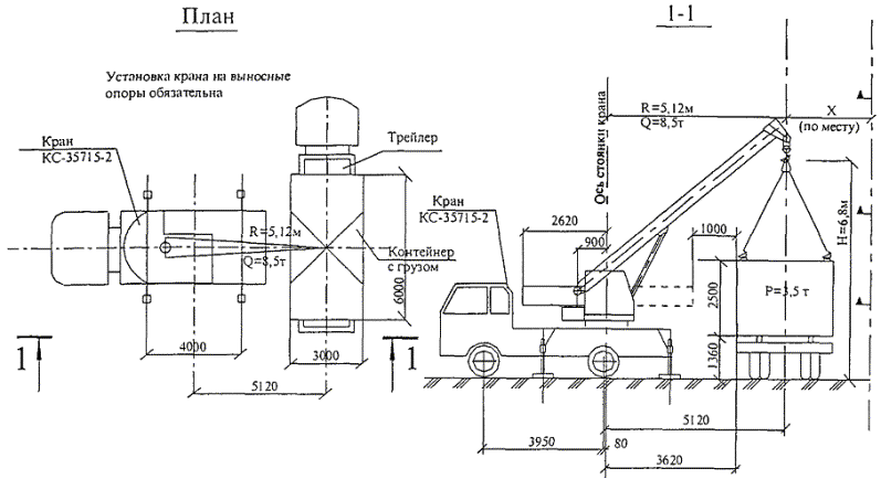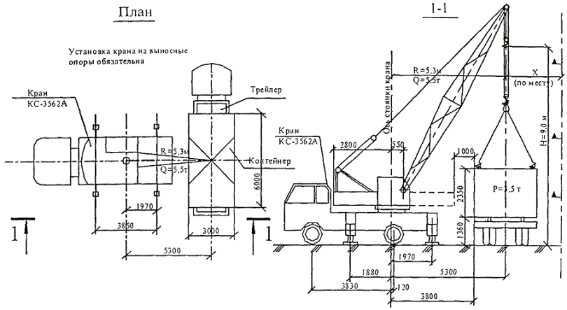Погрузочно-разгрузочные работы должны производиться краном при условии установки его на все выносные опоры (аутригеры). Масса поднимаемых грузов должна быть в пределах грузовой характеристики используемых кранов.