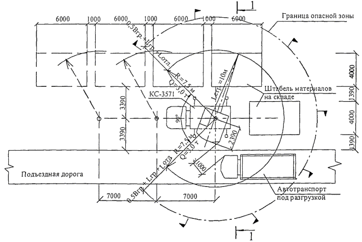1.3 При производстве погрузочно-разгрузочных работ технологическая карта должна быть привязана к конкретной площадке с учетом используемого грузоподъемного крана, наличия воздушных линий, инженерных сетей и коммуникаций, зданий и сооружений.