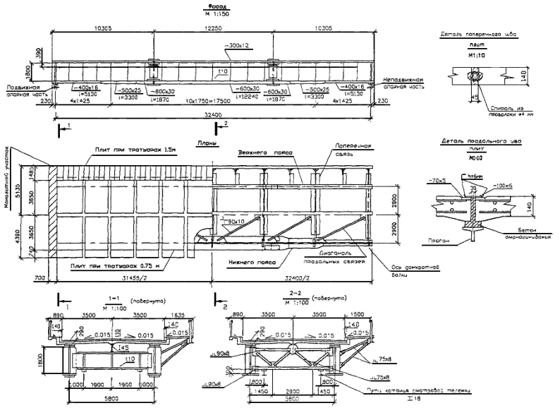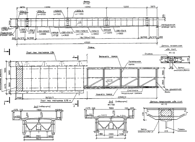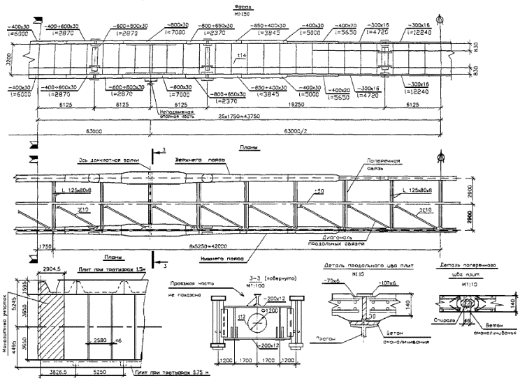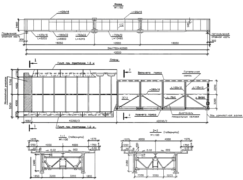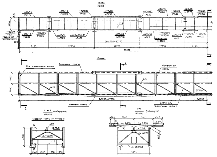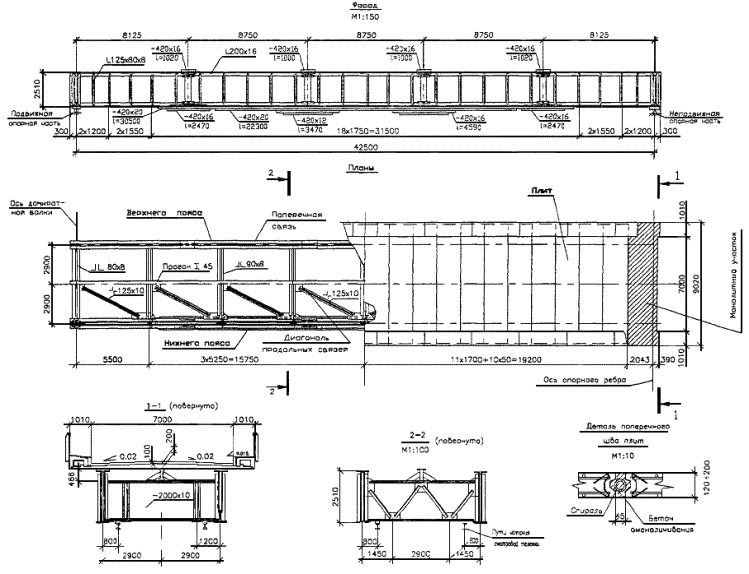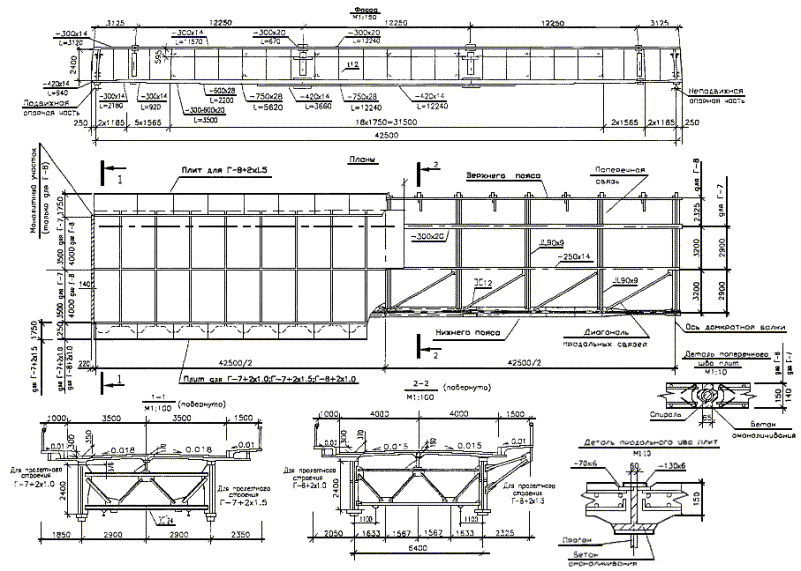 - сечения поясов и стенок главных балок, места изменения сечений и монтажных стыков;