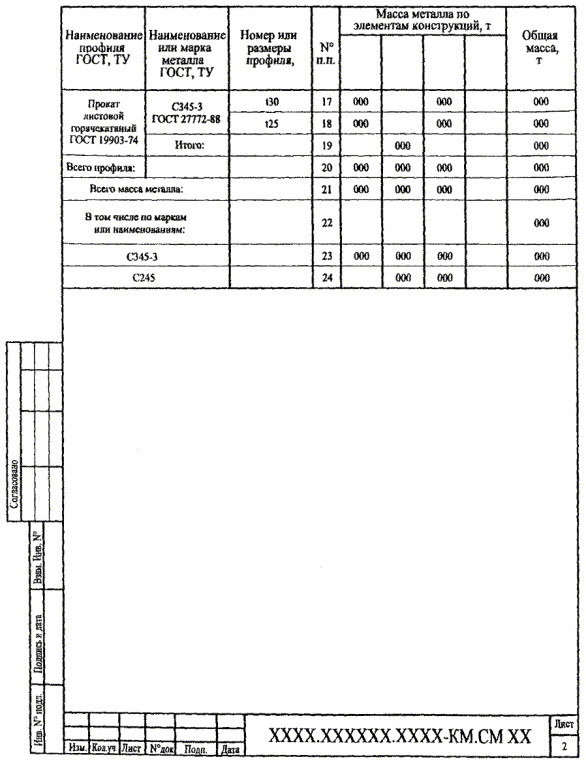 1 Данные об элементах металлических конструкций, разработанных в чертежах марки КМ, вносят в таблицу по форме 1: