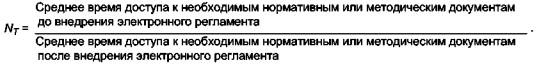 Среднее время доступа к необходимым нормативным или методическим документам до и после внедрения регламента оценивается экспертным путем или по результатам опроса работников организации.