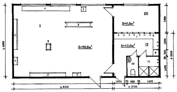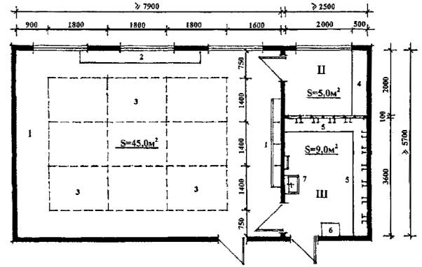 Рис. П.11. Зал гимнастических занятий с раздевальной и кладовой отделения дневного пребывания несовершеннолетних.