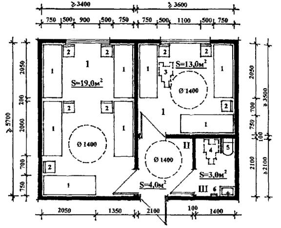 Рис. П.6. Спальные комнаты с санитарным узлом отделения дневного пребывания граждан пожилого возраста и инвалидов.