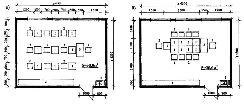 Рис. П.8. Игровая комната отделения дневного пребывания несовершеннолетних. Расстановка оборудования: а) для приготовления уроков; б) для досуговых и ситуационных игр.