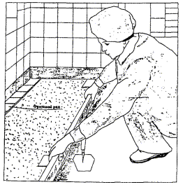 2.1 Полы из керамических плиток можно настилать, если в здании закончены общестроительные и монтажные работы, при производстве которых может быть повреждено готовое покрытие пола: гидроизоляция, устройство фундаментов под оборудование, установлены оконные и дверные коробки, проложены скрытые сети электропроводки, завершены санитарно-технические работы, исключая установку приборов, освобождены проходы к рабочему месту, доставлены на рабочее место материалы, инструменты и приспособления.