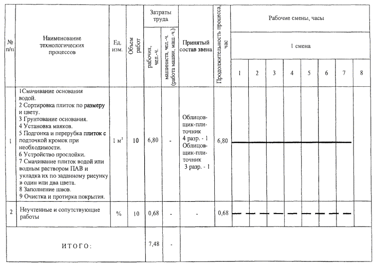Таблица 7 - График производства работ при поштучной укладке керамических плиток размером 150´150 мм
