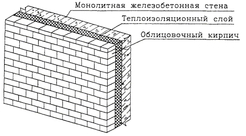 1.2 Карта предназначена для производства наружных облицовочных работ с применением кирпичей и теплоизоляционного материала в виде пенополистирольных плит, образующих промежуточный утепляющий слой между облицовкой и стеной из монолитного железобетона. Конструктивное решение стенового ограждения представлено на рисунке 1.