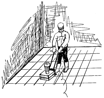 Промывка полов с помощью щеток и резиновых губок |