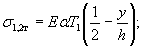 Пример 1. Найти температурные напряжения на поверхности и подошве плиты при невозможности коробления и линейном распределении температуры по толщине.