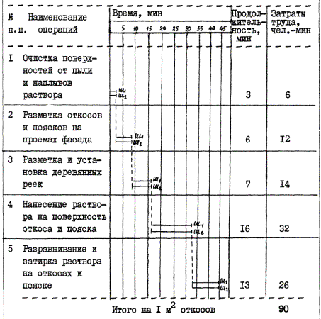Снижение затрат труда и повышение выработки рабочих достигается в результате сокращения работ по устройству маяков, подготовительного слоя и сокращения численного состава звена штукатуров по сравнению с ЕНиР.