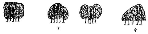 2. Треугольное - высокие деревья находятся в центре полосы, низкие - на опушках.