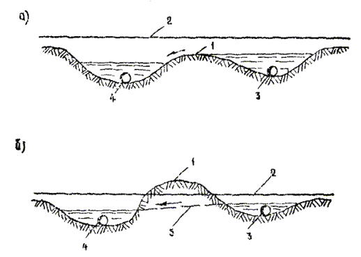 Сток по сухим пылеватым грунтам (пески, лессы и т.п.) при возможности образования грунтовой корки, препятствующей быстрому прониканию воды в грунт |