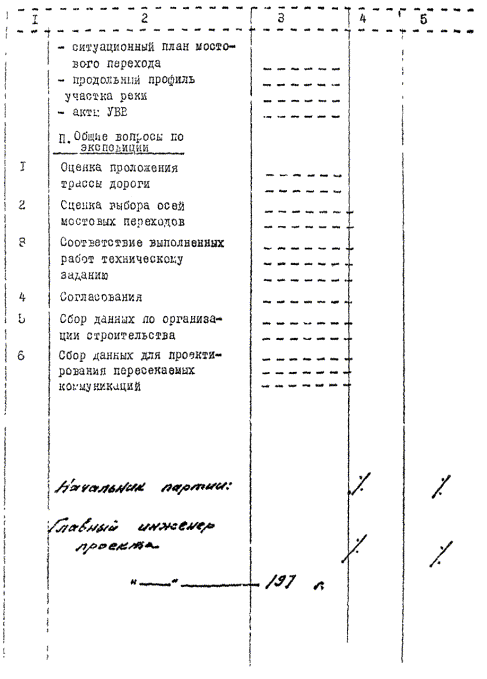 20. Отобрать материалы изысканий прошлых лет; необходимую литературу, инструкции и указания «Перечня действующих инструктивно-нормативных документов» Союздорпроекта издания 1975 г.