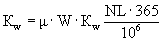 Для расчета величины Кw можно по аналогии применять следующие коэффициенты: