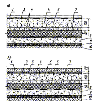 Рис. 1. Конструкции обогреваемых полов при отсутствии кислотных воздействий