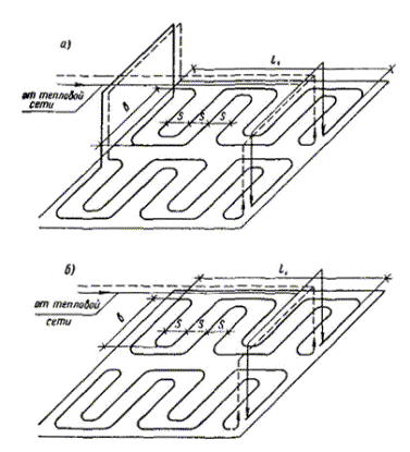 3.1. Нагревательные трубопроводы в толще пола должны размещаться, как правило, в виде змеевиков по бифилярной схеме (рис. 4).