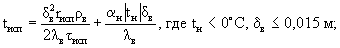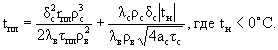 rc = 170 кг/м3; rв = 1000 кг/м3; Сс = 2,3 кДж/(кг × °С) [0,55 ккал/(кг × °С)]; Cв = 4,19 кДж/(кг × °С) [1 ккал/(кг × °С)]; lc = 0,151 Вт/(м × °С) [0,13 ккал/(м × ч × °С)]; lв = 0,6 Вт/(м × °С) [0,5148 ккал/(м × ч × °С)]; ас = 1,4 × 10-3 м2/ч; ав = 0,515 × 10-3 м2/ч; rпл = 92,5 Вт × ч/кг (79,5 ккал/кг); rисп = 694 Вт × ч/кг (595 ккал/кг).