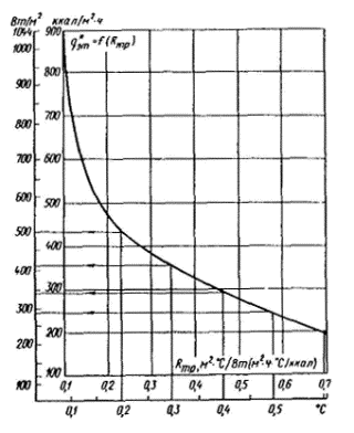 R - термическое сопротивление м2 × °С/Вт [м2 × ч × °С/ккал];