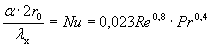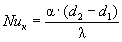 Из формулы (18), подставив в нее указанные значения V, d2 и d1, а также значения v и a для воздуха, по приложению II находим величину коэффициента теплоотдачи: α = 13,5 ккал/м2 · час · град.