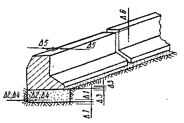 1. Отклонение от прямой линии. 2. Превышение одного камня над другим 3. Зазор между бортовыми камнями |