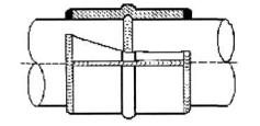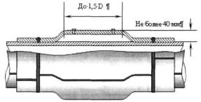 Необжимная приварная муфта большего диаметра, имеющая конические переходы от цилиндрической части муфты к поверхности трубы |