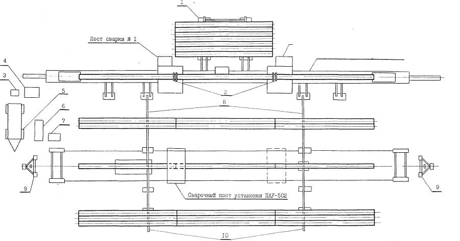 2.4. Подготовленные к сборке трубы с приемного стеллажа поочередно подаются на рольганг линии ЛСТ-81.