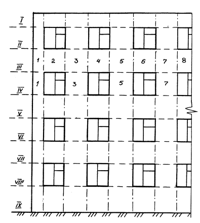 Фасад разбивают на горизонтальные захватки, границы которых совпадают с верхним и нижним обрезом оконных проемов.