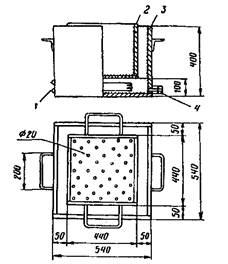 3.1.4. Решетчатую тару, заполненную метизами, погрузить в бак с кипящей водой на 8 - 10 мин (см. чертеж).