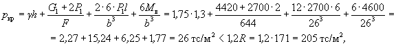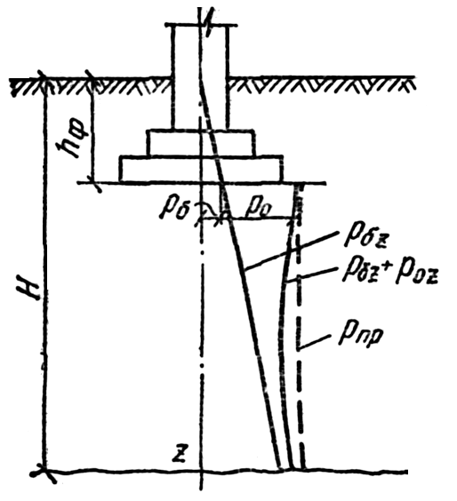 pср - среднее давление под подошвой вышерасположенного фундамента при особом сочетании нагрузок.