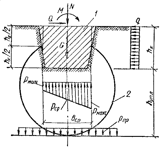 Рис. 12.1. Эпюра предельного давления под подошвой фундамента при сейсмическом воздействии