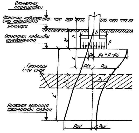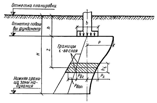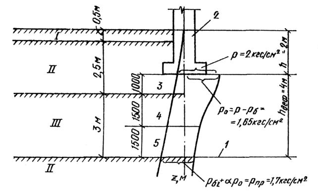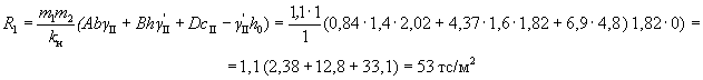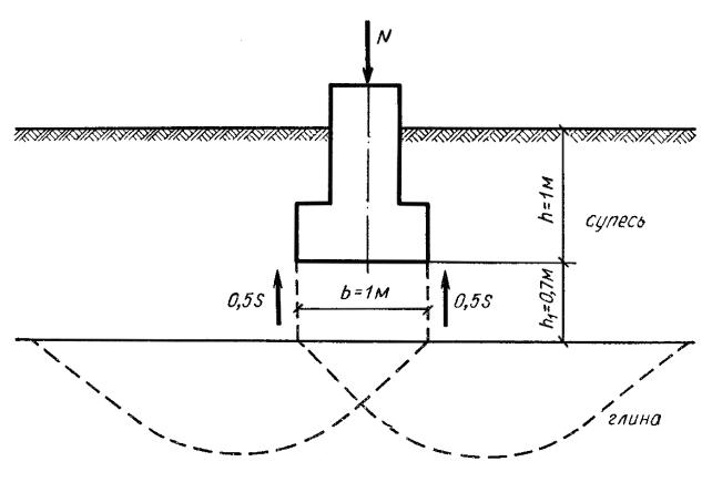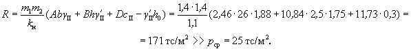 h - глубина заложения фундаментов (в случае неодинаковой вертикальной пригрузки с разных сторон фундамента принимается значение h, соответствующее наименьшей пригрузке, например со стороны подвала);