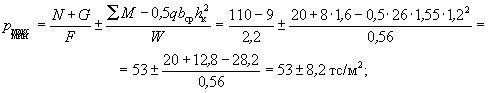 в) максимальное расчетное напряжение под подошвой фундамента, вычисленное с учетом его неполного опирания на грунт, не превышает краевой ординаты эпюры предельного давления.