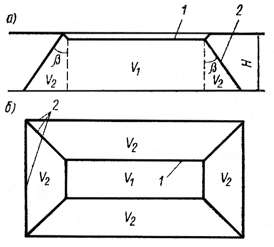 а - расстояние в плане от ближнего края дна котлована более заглубленного фундамента до края подошвы фундамента с меньшей глубиной заложения;