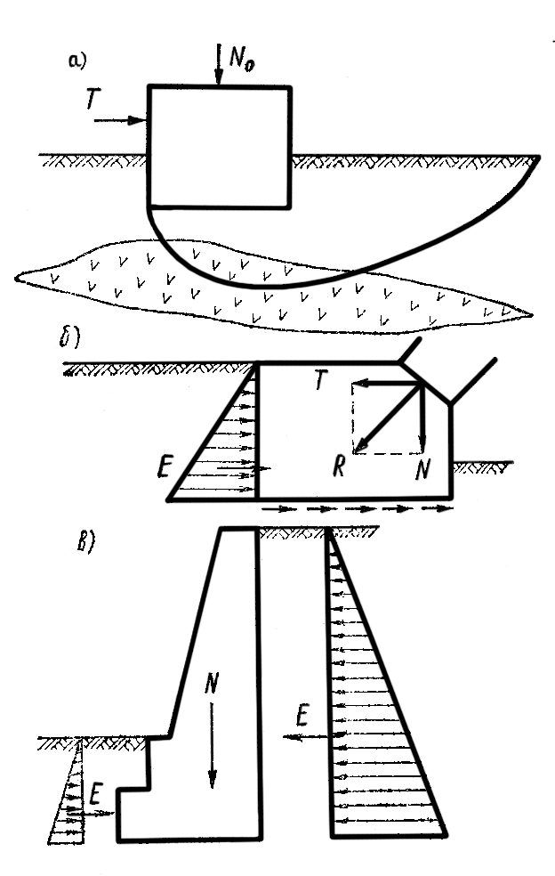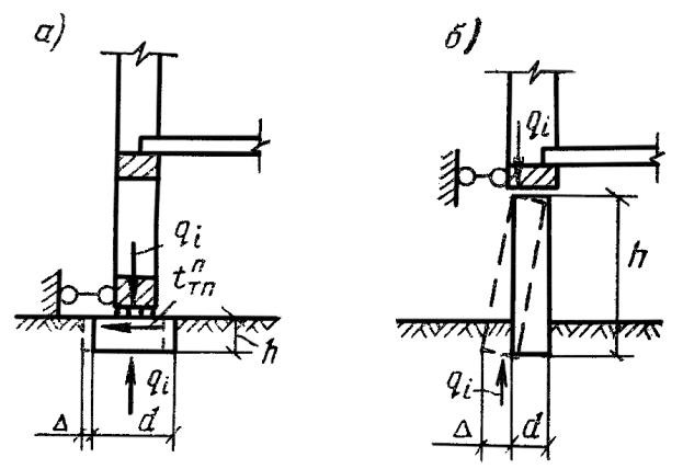 г) засыпка грунтом пазух котлованов и выполнение фундаментных подушек из материалов, обладающих малым сцеплением и трением на контакте с поверхностью фундаментов;