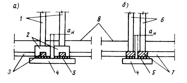 Столбчатые фундаменты, разделенные осадочным швом, должны располагаться на одном уровне.