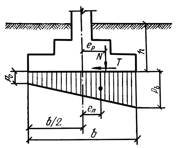 Эксцентриситет расчетной нагрузки ep и эксцентриситет эпюры предельного давления еп определяются выражениями: