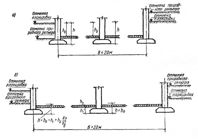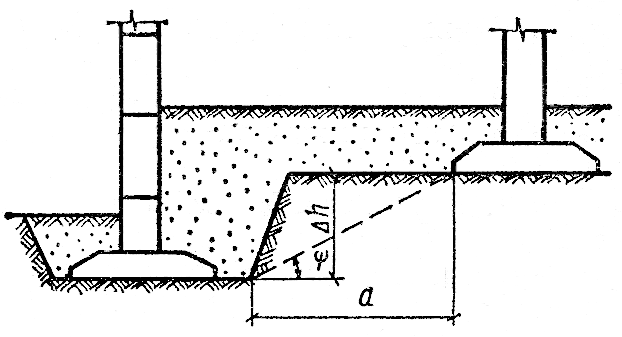 При необходимости заложения соседних столбчатых фундаментов на разных уровнях должно быть выполнено условие: